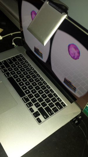 A quick,” just want to try it out” test. In Unity add a live webcam input as a webcam texture on a plane and rig up a small mirror on the laptop’s inbuilt camera to feed the keyboard into the oculus VR environment.